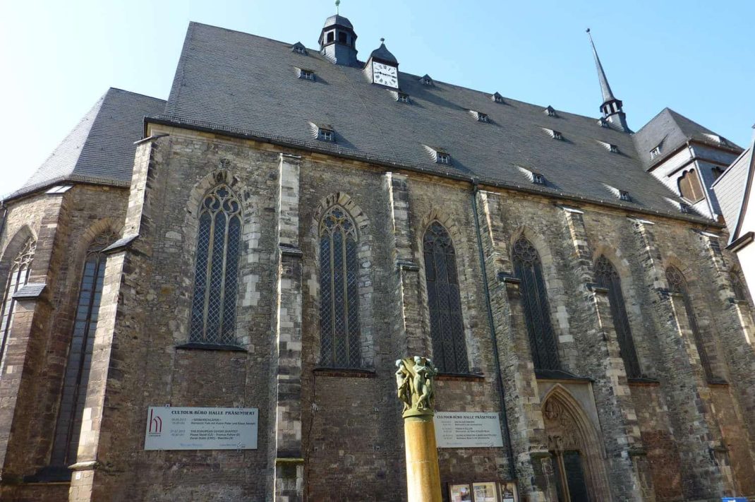 Die St.-Ulrich-Kirche – direkt an Halles Fußgängerzone und fast gleich neben dem Marktplatz gelegen – wurde ab Mitte des 14. Jahrhunderts zunächst als Klosterkirche
