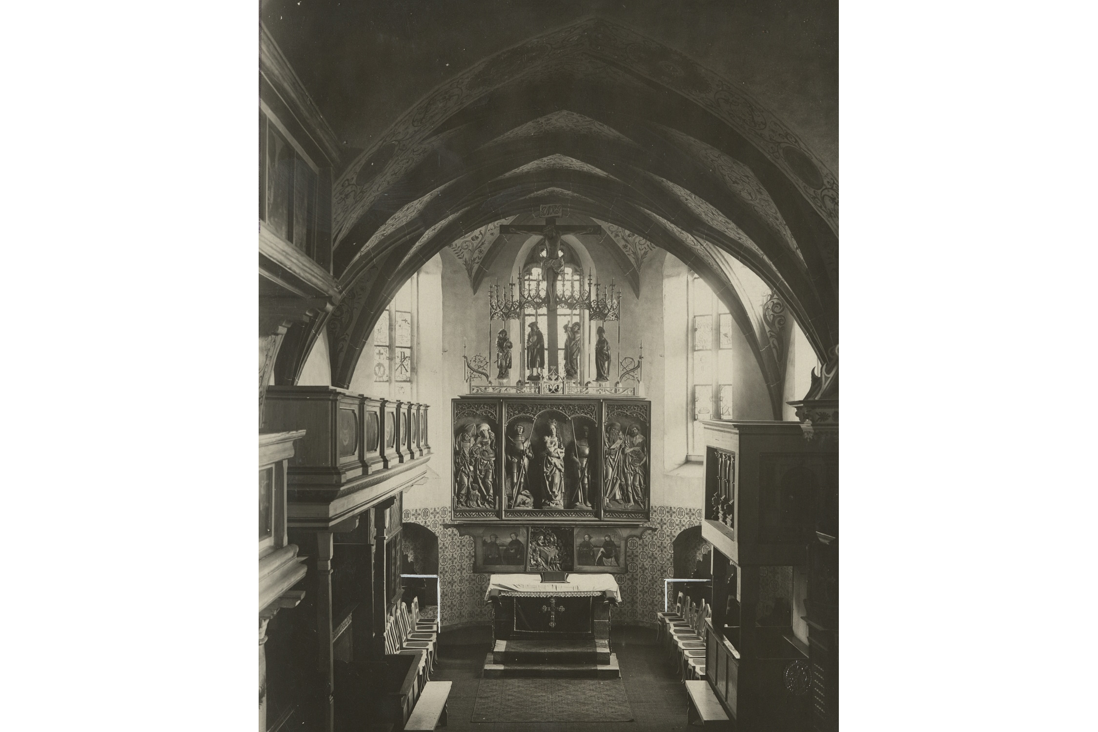 Die Besonderheit des Gotteshauses ist der dreifach wandelbare Flügel-Altar aus dem Jahre 1520. Die Werktags- und Sonntags-Seite des Altars zeigen im Mittelschrein jeweils vier Tafelmalereien. Die Festtags-Ansicht besteht aus geschnitzten und vergoldeten Dreiviertelplastiken: Maria mit dem Kind im Zentrum und umgeben von sechs Heiligenfiguren. In der geöffneten Predella ist die geschnitzte Darstellung des Sterbens der Maria zu sehen, daneben vier vergoldete Heiligenfiguren.