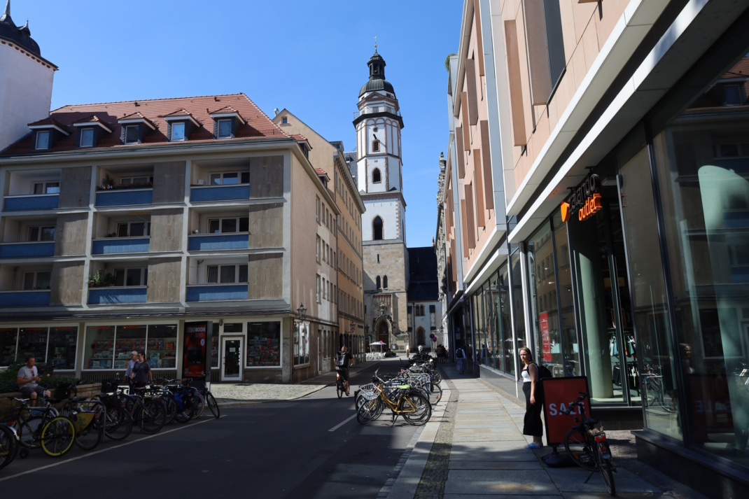 Das wurde zwar 1927 abgerissen, um Platz für das Messehaus Petershof zu schaffen. Aber wenn man die Burgstraße Richtung Norden schaut, hat man einen Blick, den auch der gerade 22-jährige Student auch hatte – direkt auf die Thomaskirche, die Wirkungsstätte von Johann Sebastian Bach, der damals noch lebte. Und wer Klopstocks berühmtestes Werk liest, sieht durchaus eine gewisse Verwandtschaft zu den großen Oratorien Bachs.