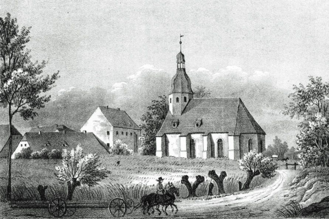 1372 wurde die Kirche erstmals schriftlich erwähnt. Nach der Reformation wurde 1555 das Nachbardorf Dölitz mit dem Vorwerk Meusdorf eingepfarrt; 1691 kam Lößnig dazu. Nach der fast völligen Zerstörung der Kirche aufgrund eines Brandes 1612 folgte nach dem Neuaufbau 1627 die erneute Weihe, nunmehr mit barockem Turm.