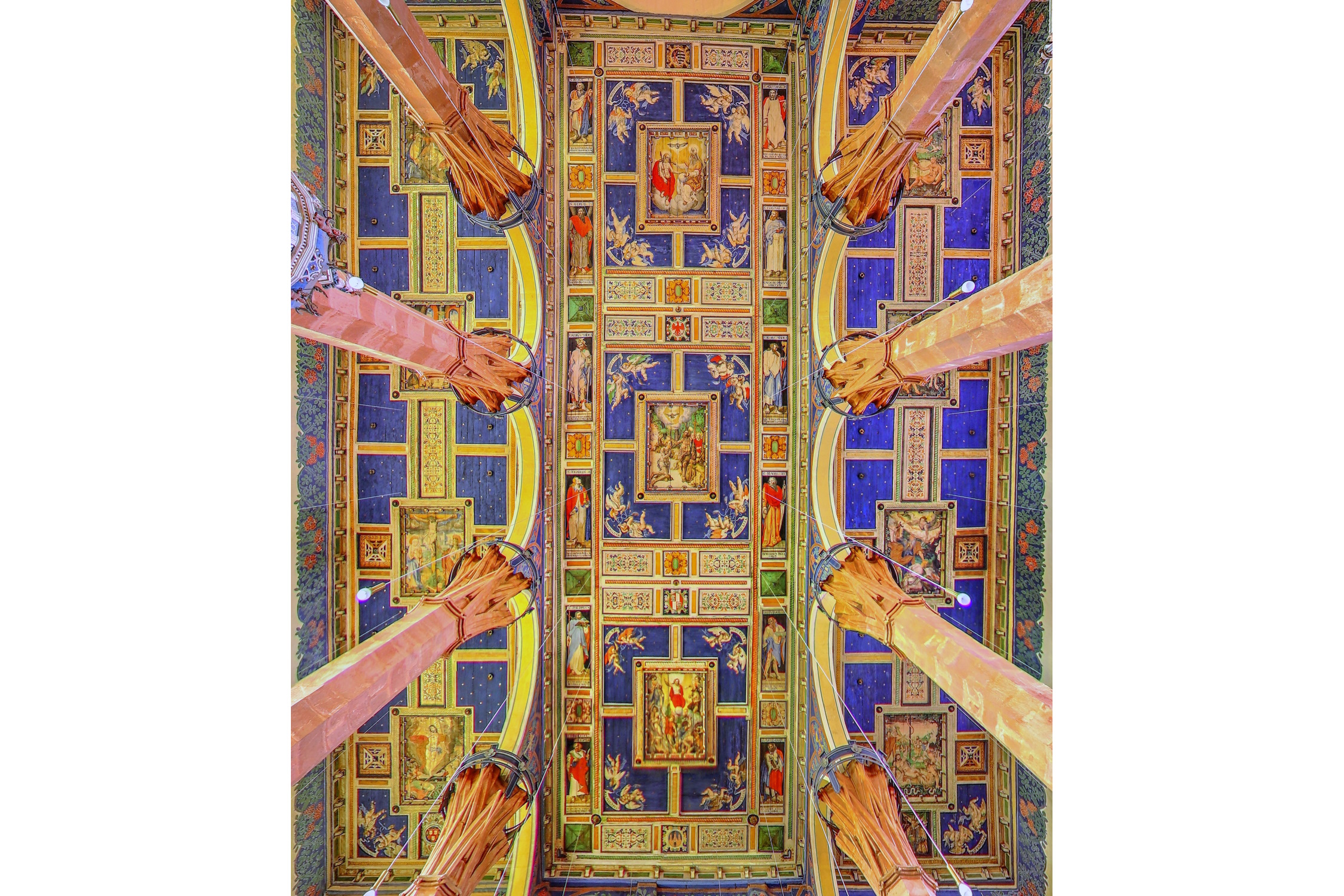 In den Randstreifen sind die Apostel dargestellt; in den Seitenschiffen sind typologische Darstellungen aus dem Alten und Neuen Testament zu finden.