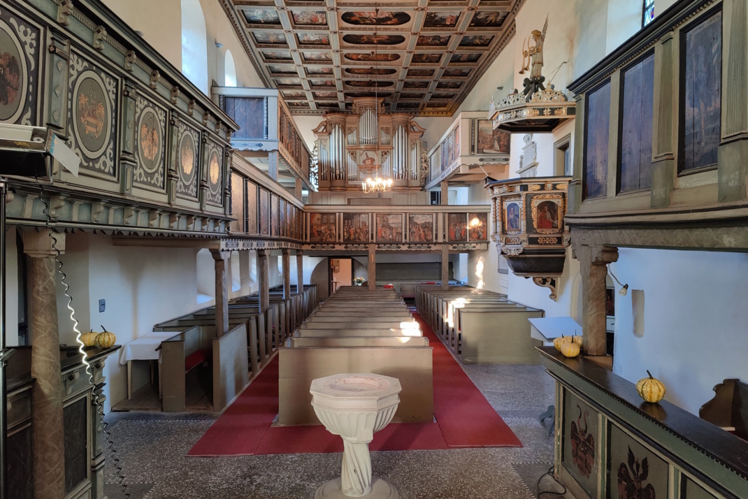 Die gesamten Baukosten für den letzten Bauabschnitt betrugen fast 100.000 Euro. 2021 wurde die Restaurierung abgeschlossen, und die Bilderdecke erstrahlt wieder in voller Farbenpracht.