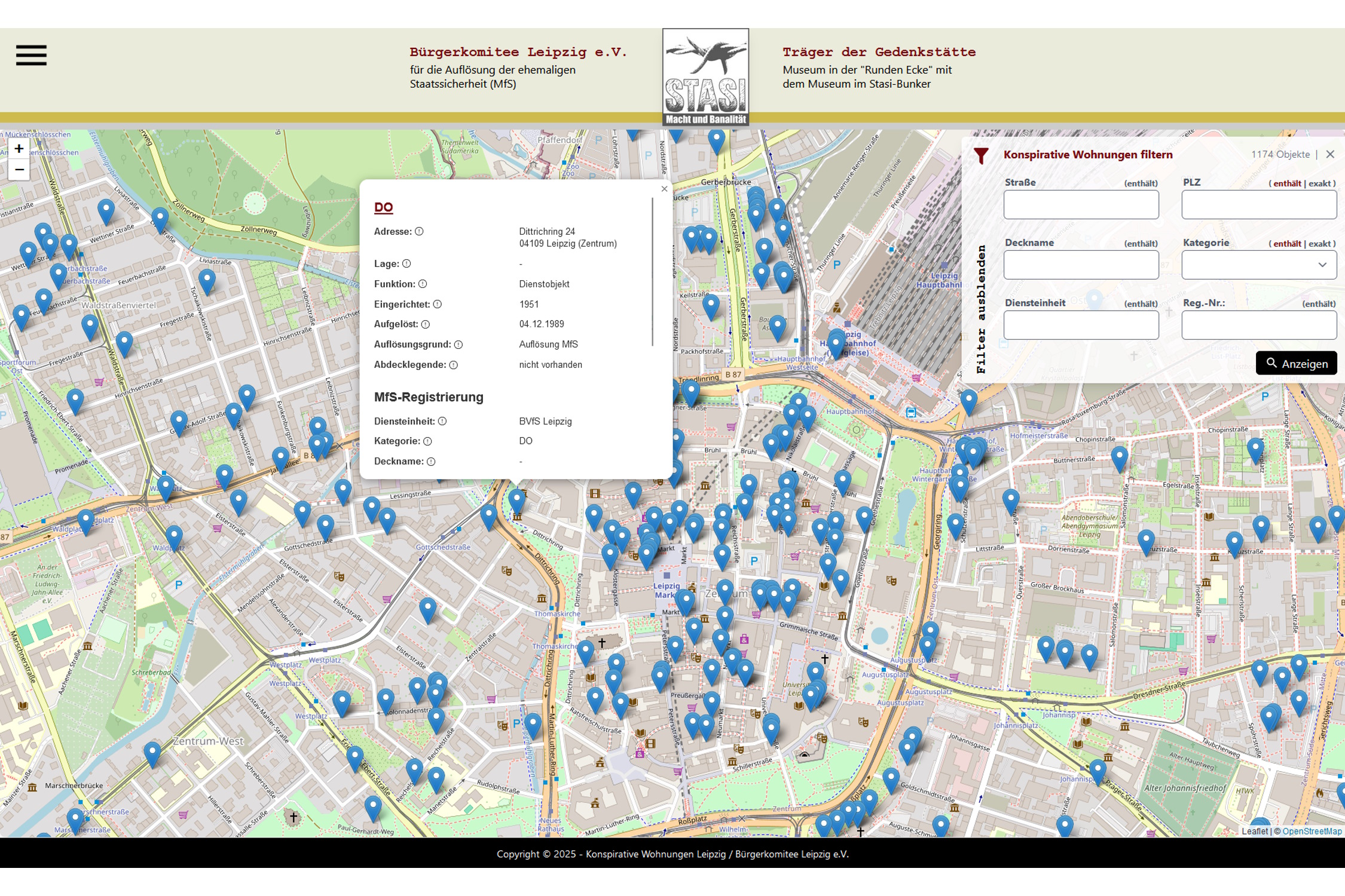 Erster digitaler Stadtplan mit 1.062 Konspirativen Stasi-Wohnungen und -Objekten in Leipzig