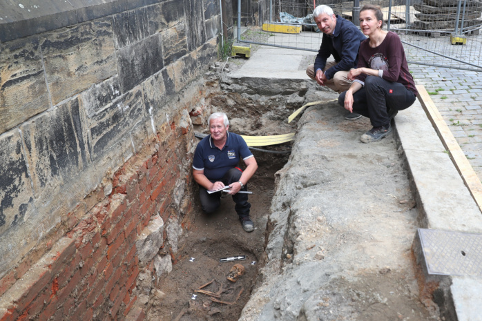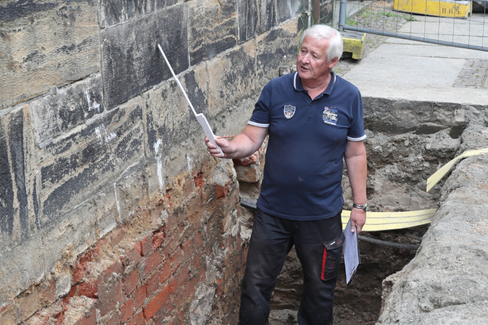 Es wurde zunehmend feucht im Gemäuer der inzwischen 860 Jahre alten Kirche im Herzen der Stadt. Das machte eine umfassende Trockenlegung erforderlich, der Sockel musste saniert werden. Weil hierfür natürlich tief gebuddelt werden muss, kam an dieser Stelle auch das Landesamt für Archäologie Sachsen mit ins Spiel – mit einem Team unter Leitung von Peter Hiptmair.