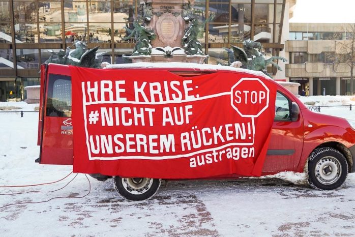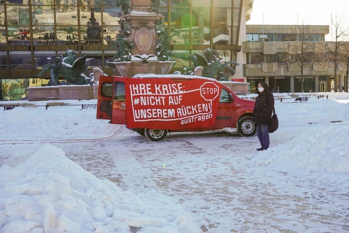 Stand vor drei Wochen die Verteilung der COVID-19-Impfstoffe im Mittelpunkt, kreisten die Redebeiträge verschiedener Gruppen und Initiativen aus dem politisch linken Spektrum heute schwerpunktmäßig um die als unfair empfundenen Lern- und Arbeitsbedingungen während der Coronakrise.
