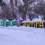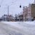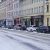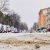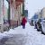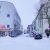 In der Stadt: Dicke Schneedecken auf allen Straßen, welche ich zu Fuß passierte; gelegentlich Schneearbeiter, die an Kreuzungen Gehwege räumten.