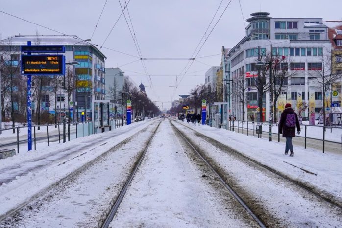Schneeverwehungen, Glätte und eisige Temperaturen legten das öffentliche Leben in Leipzig am Sonntag über weite Strecken lahm. Die Leipziger Verkehrsbetriebe (LVB) stellten den Fahrbetrieb weitgehend ein. Die Straßenbahnlinien 1, 3, 7, 11 und 15 fahren im Notbetrieb. Alle weiteren Bahn- und Buslinien konnten witterungsbedingt nicht bedient werden. Die Bahn stellte den Fernverkehr teilweise ein.Der Deutsche Wetterdienst (DWD) warnt bis Montag-Nachmittag weiter vor Schneeverwehungen und Glatteis. Außerdem erwarten die Meteorologen bis 15 Zentimeter Neuschnee und Frost bis -12 Grad. Autofahrten sollten also dringend vermieden werden.