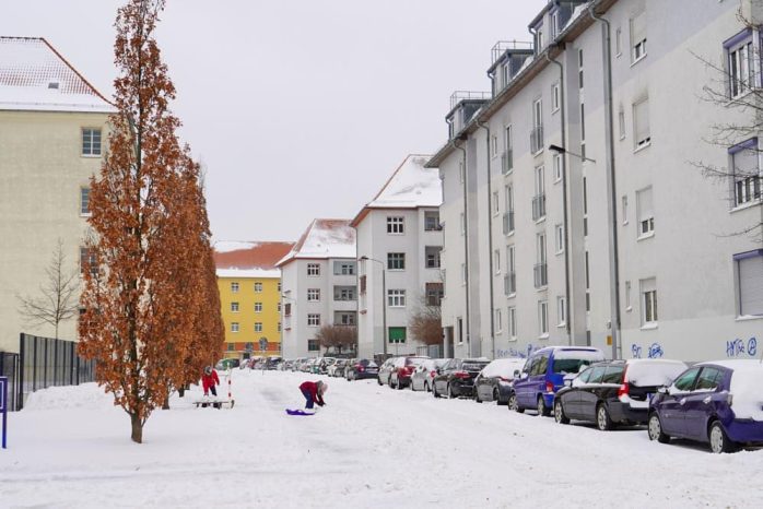 Jedes Mal wenn in Leipzig – klimabedingt reduziert – wenigstens so viel Schnee herunterkommt, dass man darauf zumindest mal ein paar Stunden herumrutschen kann, geht am Peterssteinweg offensichtlich ein rotes „Heute ist Rodeltag“-Reaktions-Lämpchen an.