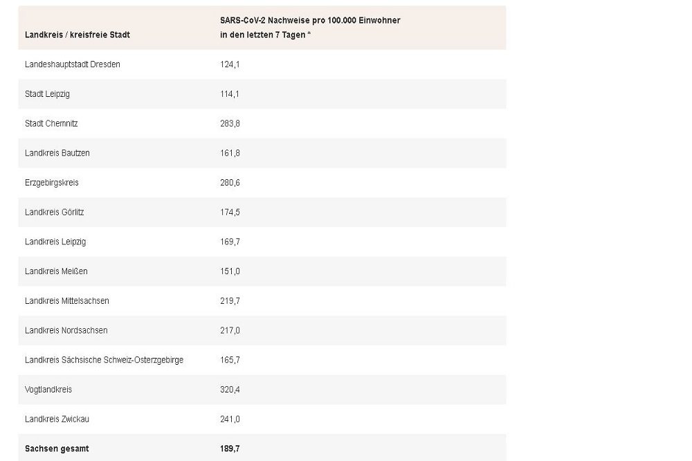 Im Moment sind laut Sozialministerium 945 Betten belegt. Ein Alkoholverbot und Ausgangsbeschränkungen gelten in allen sächsischen Landkreisen – da überall eine 7-Tage-Inzidenz von 100 überschritten wurde.