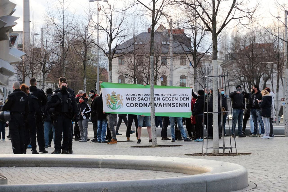 Kundgebung von „Bürgerbewegung Leipzig 2021“ und Gegenprotest