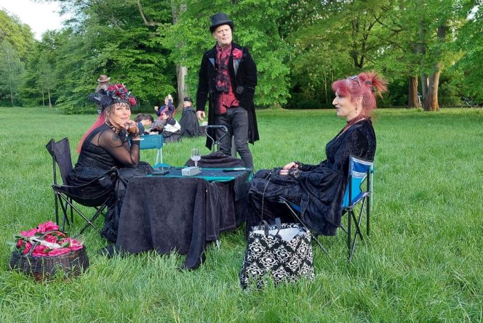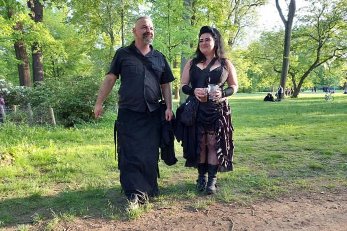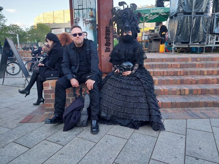 Außerdem sind in Leipzig wieder Menschen unterwegs, die augenscheinlich gerne beim WGT dabei gewesen wären – das aber nicht stattfinden darf. Nun treffen sie sich einfach so, wie hier in den Parks und an der Moritzbastei.