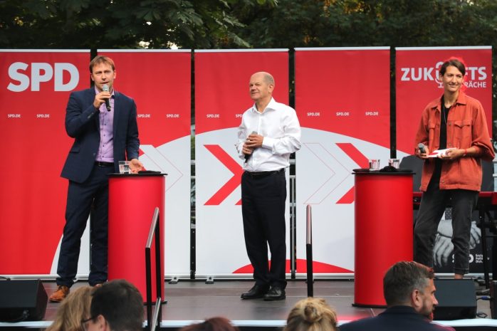 Die „Bürgerbewegung Leipzig“, Ortsgruppe der rechtsextremen Freien Sachsen, zum Protest im Clara-Zetkin-Park aufgerufen, um die Wahlkampfveranstaltung zu stören. Antifaschistischer Gegenprotest hat sich ebenfalls angekündigt – man stimme zwar nicht mit allem überein, wofür Olaf Scholz steht, dennoch heiße Antifaschismus sich immer und überall gegen Rechtsextremismus zu stellen.