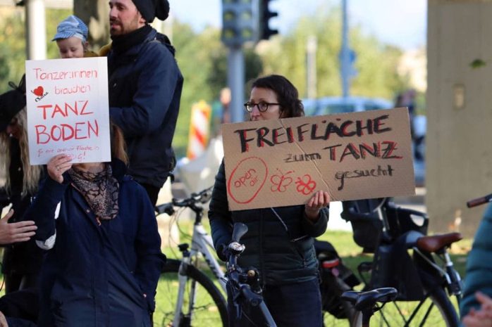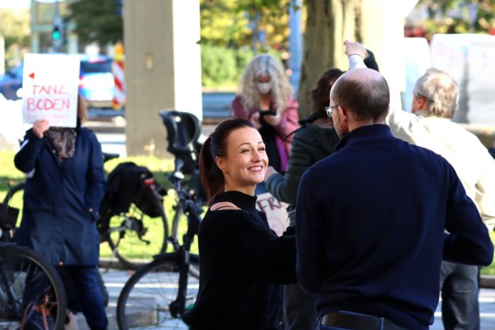Derweil gab es einen Flashmob vor dem Rathaus: mit Salsa für Freiflächen in Leipzig für Tanz & Partys