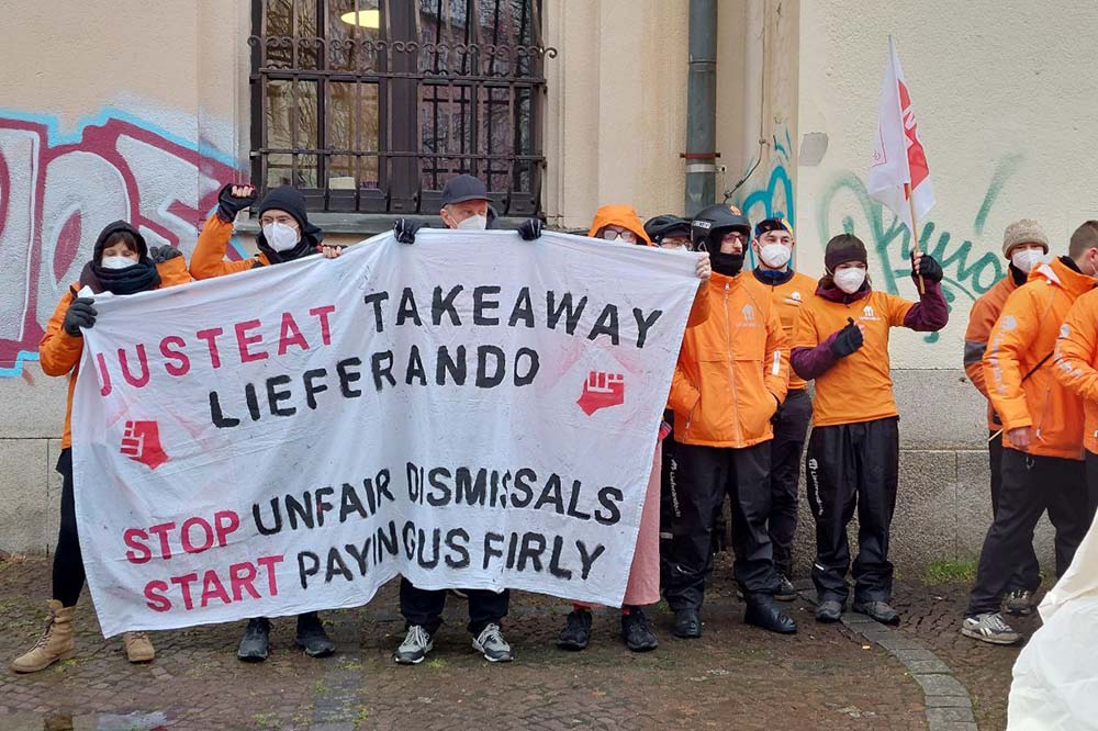 Protest gegen Kündigung von Lieferando-Mitarbeiter vor Finanzamt