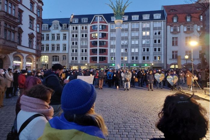 Auch am heutigen Montag zeigten sich tausende Menschen in Deutschland auf Kundgebungen und Mahnwachen solidarisch mit der Ukraine. Bereits am Wochenende hatten beispielsweise in Berlin hunderttausende Menschen an einer Demonstration teilgenommen. Auch in Leipzig verzeichnete eine Solidaritätsveranstaltung am Samstag mehrere tausend Teilnehmende.