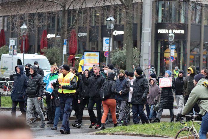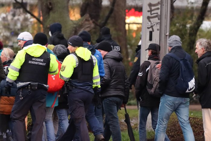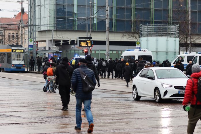 Dort wurden 66 Personen gezählt, die sich auf Teilen des Rings fortbewegten. Am Rande wurden immer wieder junge Menschen durch die Polizei am Gegenprotest gehindert, da dieser nicht als Versammlung angemeldet war. Im Gegensatz zu den „Spaziergängern“, welche heute nach Monaten der unangemeldeten Märsche mal wieder eine reguläre Versammlungsanmeldung durchgeführt hatten und so den Ring ungestört und polizeilich abgesichert umrunden konnten.