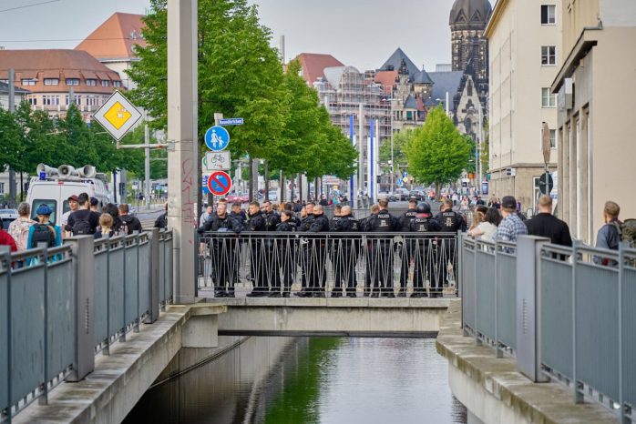 Dass Deutschland nie wirklich vom Faschismus befreit worden sei, merkte das „Solidaritätsbündnis Antifa Ost“ an. Ein Beleg dafür sei die „Soko LinX“, die immer wieder gegen Antifaschist/-innen ermittle und damit Faschisten schütze. Die Gruppe „CopWatch LE“ forderte, die Polizei gänzlich abzuschaffen. Für Minderheiten sei sie eher Gefahr als Schutz; zudem diene sie vor allem den Interessen der Reichen.