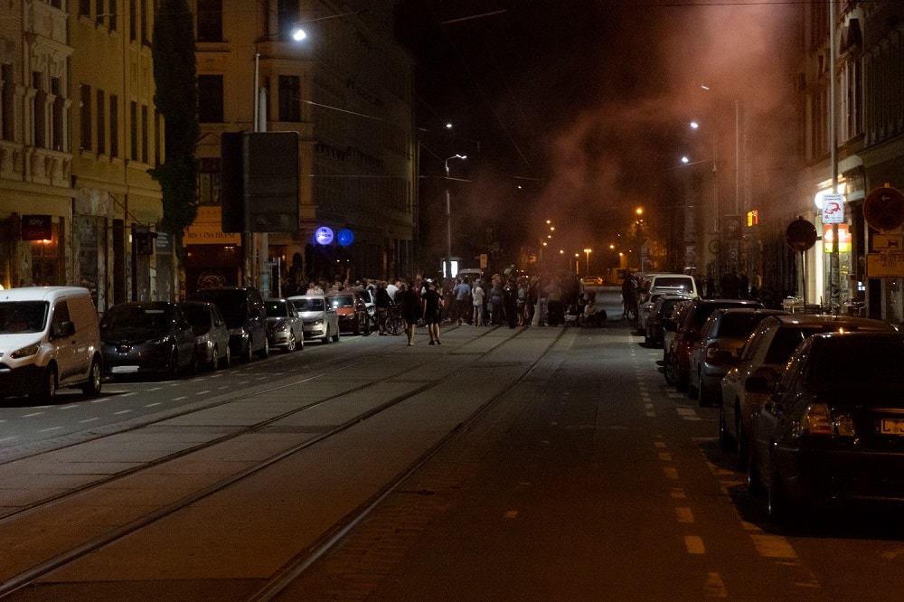 In der Nacht von Samstag auf Sonntag blockierten rund 150 feiernde Personen die Fahrbahn der Wolfgang-Heinze-Straße. Wie die Polizei mitteilte, hörten diese Musik und sperrten die Straße zwischen der Simildenstraße und der Herderstraße, sodass kein Fahrzeug den Bereich passieren konnte. Außerdem sei ein Pkw mit einer Glasflasche beworfen worden. Auch der Linienverkehr des ÖPNV musste umgeleitet werden. Bis 04:15 Uhr wurden alle Sperr- und Umleitmaßnahmen aufgehoben.