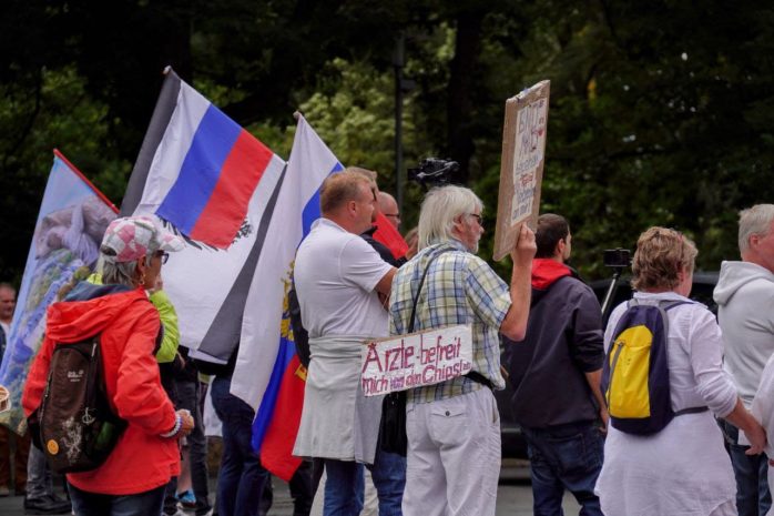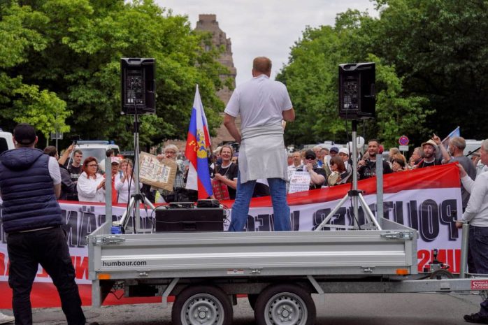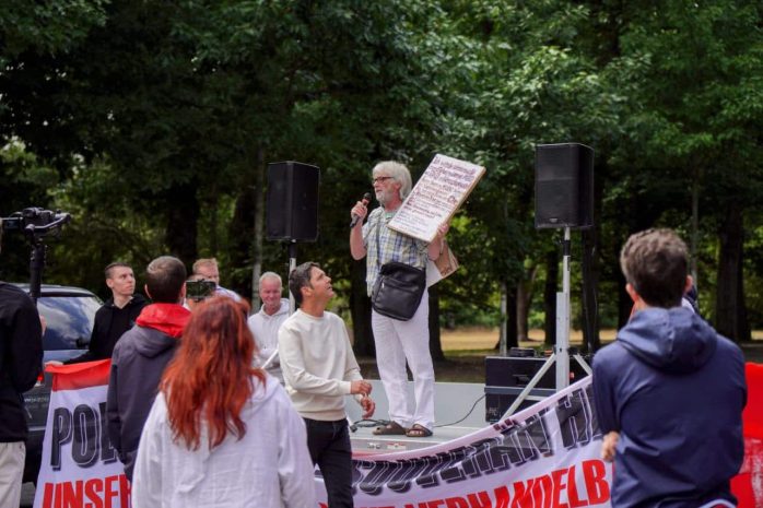 An den Themen hat sich nicht so viel geändert. Es geht um den Sturz der Regierung, um die angeblich zugunsten weniger Reicher geplante Neuordnung der Weltwirtschaft, für die die Pandemie ein willkommener Anlass gewesen sei, und um Chips, die einer der Redner gegen seinen Willen implantiert bekommen haben will.
