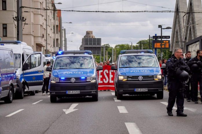 Nach der Auftaktkundgebung zog die Demonstration mit einigen dutzend Teilnehmer/-innen Richtung Innenstadt. Gegendemonstranten versuchten mehrmals Sitzblockaden zu errichten, konnten den Aufzug jedoch bis auf eine längere Unterbrechung auf der Höhe der Alten Messe nicht effektiv behindern.