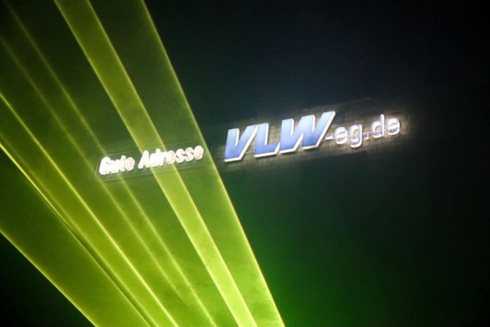 Zur Feier des Tages gab es am Samstagabend neben Livemusik und einer Zaubershow dann auch eine kurze Geschichte der VLW, dargestellt in einer Lichtshow an der Hauswand des Unternehmens. Teile der Historie der Leipziger Genossenschaft gibt es hier auf der LZ nachzulesen.