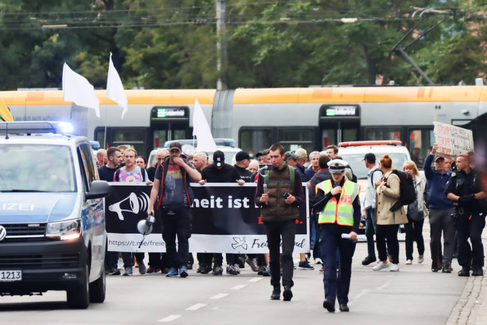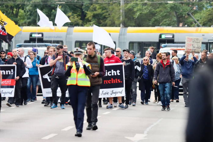 Zugleich gab es am Samstag in Leipzig einen Aufmarsch der rechtsradikalen „Freien Jugend“ mit lautstarkem Gegenprotest auf dem Wilhelm-Leuschner-Platz, von dort über den Ring und wieder zurück zum Leuschner.