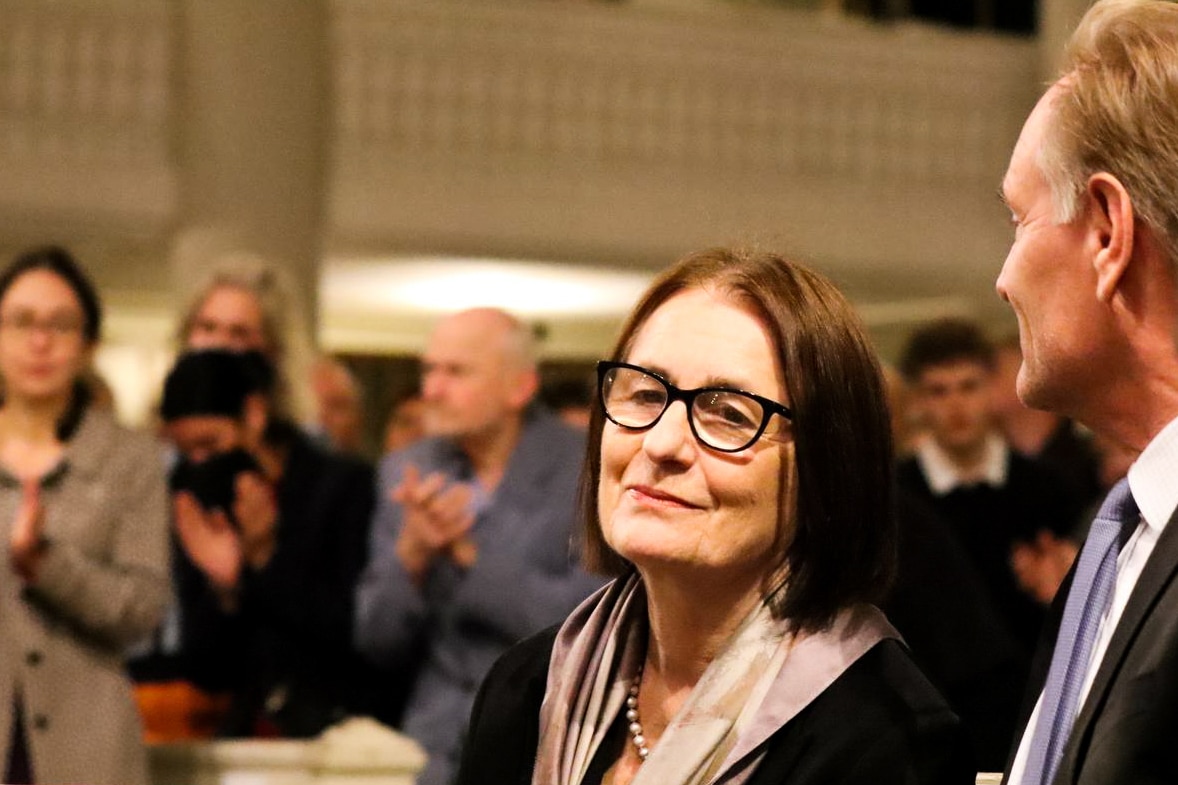 In der Nikolaikirche lauschten unter anderem Sachsens Ministerpräsident Michael Kretschmer, Leipzigs Oberbürgermeister Burkhard Jung und Ex-Bundespräsident Joachim Gauck der Rede Scherbakowas.