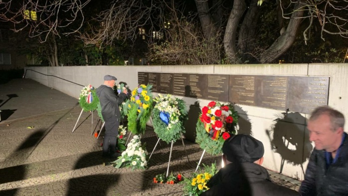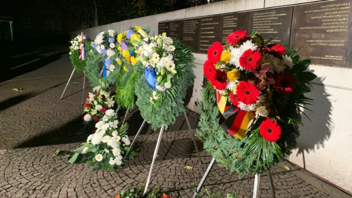 In Leipzig wird seit vielen Jahren am Synagogen-Denkmal in der Gottschedstraße an die antisemitische und rassistische Reichspogromnacht erinnert, so auch heute. Die Städträt/-innen unterbrachen ihre Sitzung, um am frühen Abend am ehemaligen Standort der Großen Gemeindesynagoge Kränze aufzustellen und innezuhalten.