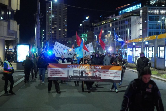 Auch heute versammelten sich selbsternannte Friedensprotestler/-innen, Anhänger/-innen der Querdenken-Szene sowie Rechtspopulisten und Mitglieder rechter Netzwerke in der Leipziger Innenstadt zum Protest – wohlgemerkt, nicht vereint bei einer Veranstaltung. Wie bereits in der vergangenen Woche fanden mehrere voneinander getrennte Demonstrationen statt.
