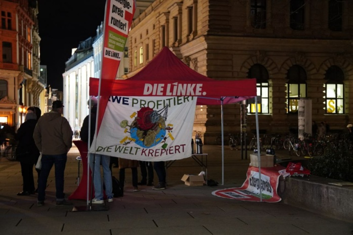 Abseits vom Geschehen auf dem Augustusplatz rief um 18 Uhr außerdem der Stadtverband von Die Linke zur Kundgebung unter dem Motto „Arbeitskampf und Klimakampf verbinden – Solidarität mit den Aktivist/-innen in Lützerath“ auf dem Wilhelm-Leuschner-Platz auf. „Die Profite von Großunternehmen und Aktionär/-innen dürfen nicht über die Bewohnbarkeit des Planeten gestellt werden. Deswegen Solidarität mit den AktivistInnen in #Lützerath – Arbeitskampf und Klimakampf verbinden“, (Wortlaut übernommen, Anm. d. Red.), hieß es im Vorfeld zur Veranstaltung.