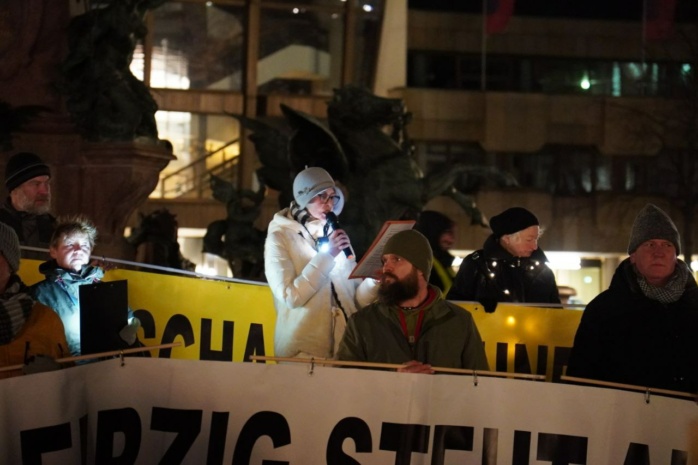 Am Lindenauer Markt wurde derweil auch protestiert, gegen steigende Preise und die immer größere werdende soziale Ungerechtigkeit. Dazu aufgerufen hatte unter dem Motto „Ihre Kriege und ihre Krisen #NichtaufunseremRücken“ die Initiative „Preise runter LE“. „Während bei den Unternehmen […] die Sektkorken knallen, müssen wir uns fragen, wie unser Lage im letzten Jahr war. Dank der Teuerungen sind unsere Löhne faktisch gesunken, von einer Angleichung an die Inflationsrate können wir nur träumen. Die Energiekosten sind explodiert, viele haben Angst vor unbezahlbaren Abrechnungen!“ (Formulierung übernommen- Anm. d. Red.), hieß es im Aufruf zum Protest.