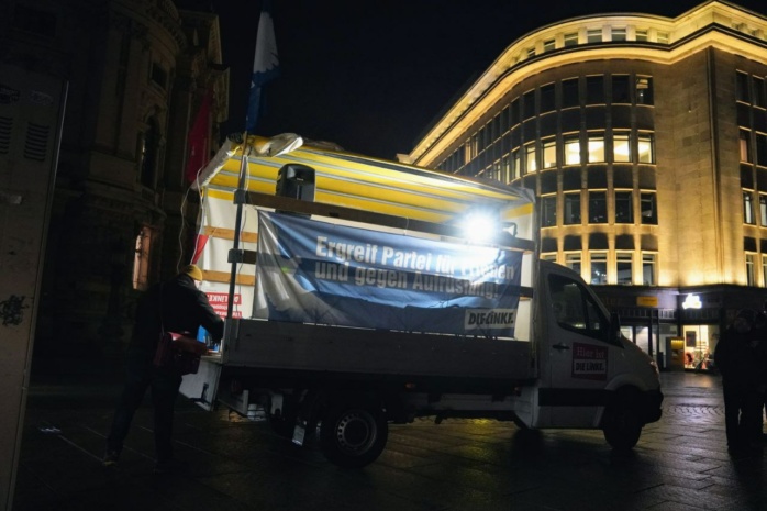 Den Anfang des „Demo-Abends“ machte der Stadtverband der Linken auf dem kleinen Wilhelm-Leuschner-Platz, zu dessen Kundgebung etwa 40 Personen erschienen. Immer am ersten Montag des Monats um 18 Uhr ruft die Partei zum Protest gegen steigende Preise und die soziale Schieflage: „Die Politik versagt bei Löhnen, Renten, Preisen, Mieten und Bafög. Gleichzeitig profitieren Rüstungskonzerne aus Krieg und Leid und machen ungerechtfertigte Gewinne auf Kosten von Menschenleben und unser aller Zukunft. Es ist an der Zeit, eine Übergewinnsteuer auf diese Profite zu erheben.“