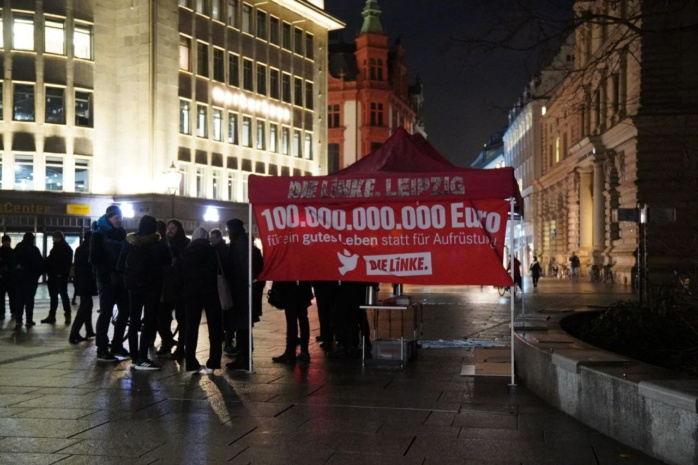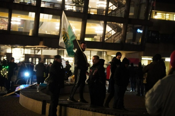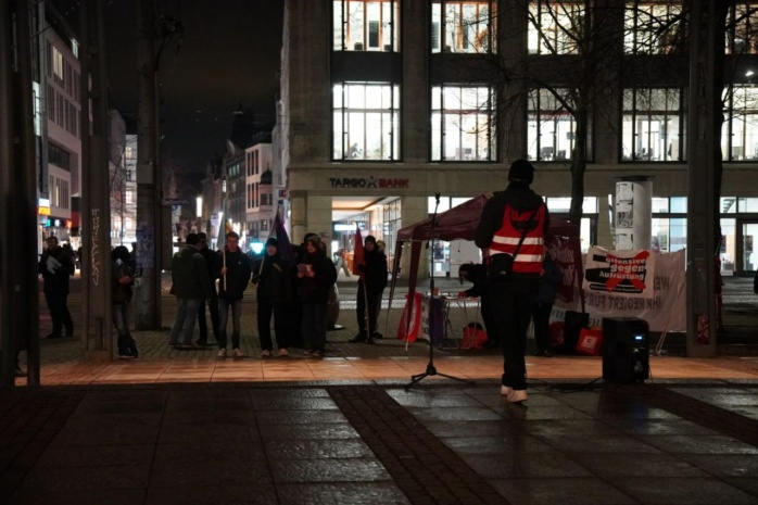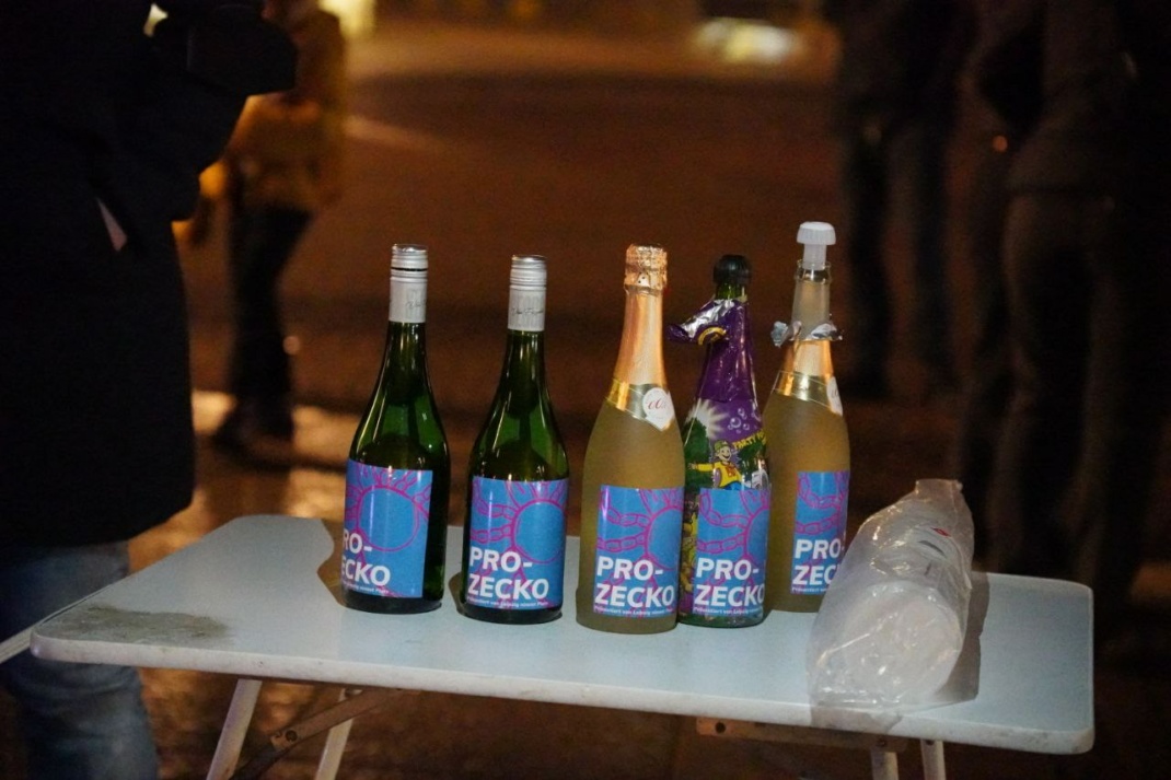 Das Aktionsnetzwerk „Leipzig nimmt Platz“, das immer wieder zum Gegenprotest aufruft und vor Ort ist, „feierte“ heute einen Antifaschistischen Neujahrsempfang. Zu der Aktion wurde auch „Prozecko“ verteilt. Außerdem hatten die Organisator/-innen zuvor die Verwendung von Pyrotechnik angemeldet. Etwa 120 Personen beteiligten sich.