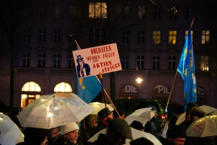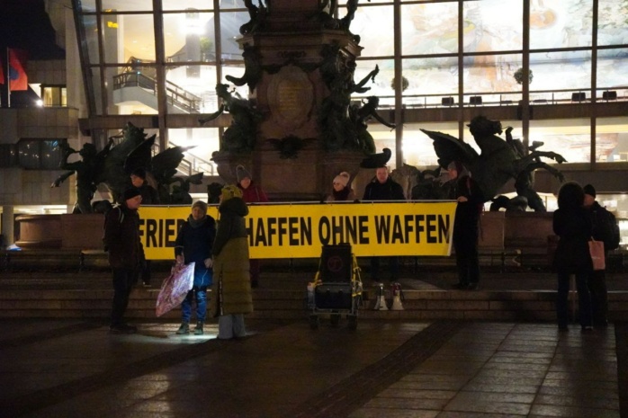 Zum einen fand unter Anmelderin Annette H. eine Kundgebung am Mendebrunnen auf der Gewandhausseite im Zeichen des Friedens statt. Auf der anderen Seite des Platzes versammelten sich Teilnehmer/-innen der Veranstaltung von Bernd R., der sich auch am gestrigen Sonntag als Versammlungsleiter einer Veranstaltung gegen die geplante Unterbringung für Geflüchtete in Stötteritz zur Verfügung gestellt hatte.