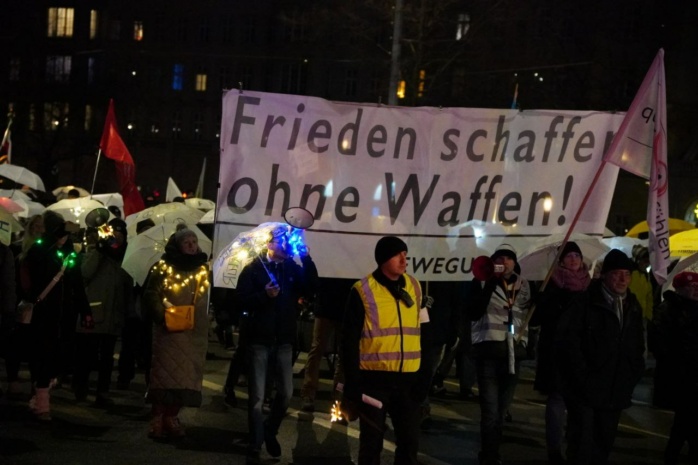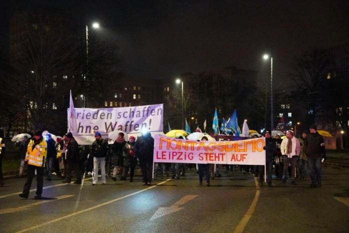 Im Aufruf zum Protest hieß es: „Seit nunmehr 2 Jahren laufen jeden Montag Verschwörungsideolog/-innen und sonstige rechte Kräfte durch Leipzig, werden jedoch immer wieder durch den Gegenprotest gestoppt und blockiert. Für uns Grund genug, den Jahresanfang zu nutzen und die letzten Jahre des Protests zu feiern und auch auf das Geschehen auf der Straße hinzuweisen.“