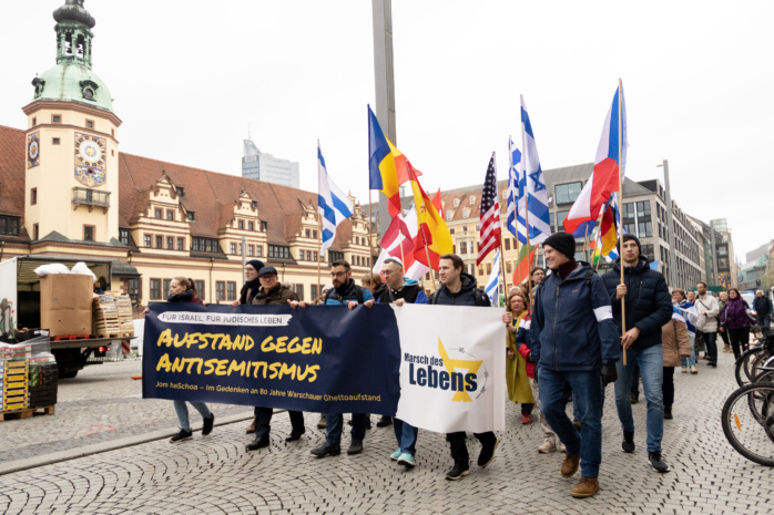 Mit bis zu 200 Teilnehmenden und Interessierten fand heute in Leipzig wie an unzähligen Orten weltweit der sogenannte „Marsch des Lebens“ statt. Der jüdisch-israelische Holocaustgedenktag namens „Jom haSchoa“ ist der Jahrestag des Warschauer Ghettoaufstands im April 1943, welcher sich in diesem Jahr zum 80. Mal jährte.