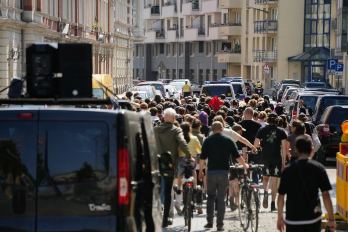 Geschätzt 130 Menschen gingen am Samstag im Leipziger Osten unter dem Motto „Eisi für alle“ auf die Straße.