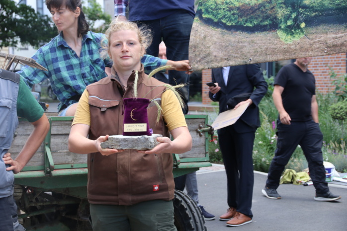 Die Bäuer*innen wollen damit auf das immense Problem des Ausverkaufs der ostdeutschen Landwirtschaft an außerlandwirtschaftliche Investoren aufmerksam machen. Bäuerliche Betriebe würden dadurch in ihrer Existenz gefährdet, so die Veranstalter*innen.
