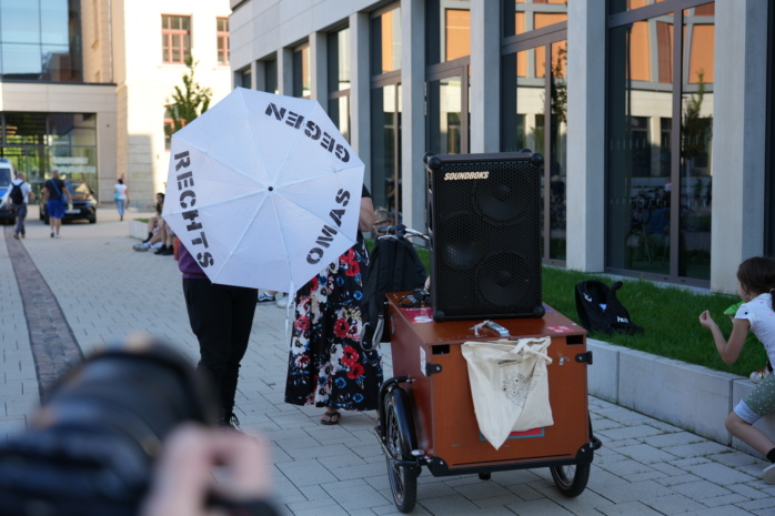 Das Aktionsnetzwerk „Leipzig nimmt Platz“ hatte anlässlich dieses Aufrufs für heute zu einer Kundgebung aufgerufen. Etwa 50 Personen folgten dem Aufruf. Rassisten waren erwartungsgemäß ebenfalls erschienen. Einer von ihnen bezeichnete Geflüchtete als „Affen“; andere pöbelten ebenfalls.