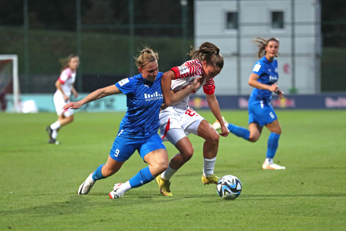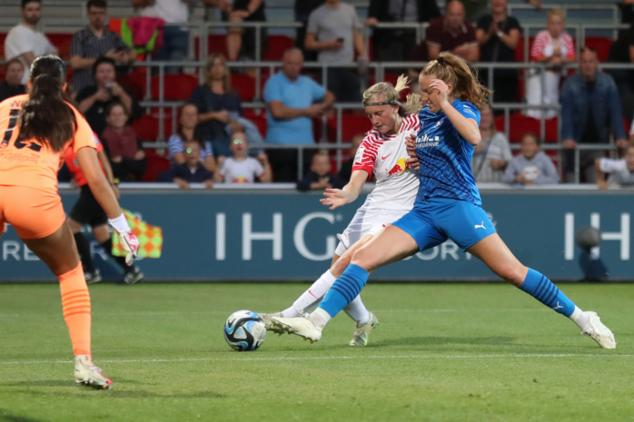 Noch etwas von der internationalen Spitze entfernt ist die Frauen-Mannschaft von RB Leipzig. Nach dem souveränen Aufstieg in der vergangenen Saison spielt diese aber nun zum ersten Mal in der Bundesliga. Am Freitag fand am Cottaweg vor etwas mehr als 1.000 Zuschauer*innen das erste Heimspiel statt. Die Leipzigerinnen konnten einen Rückstand drehen und am Ende mit 3:2 gegen Essen gewinnen.