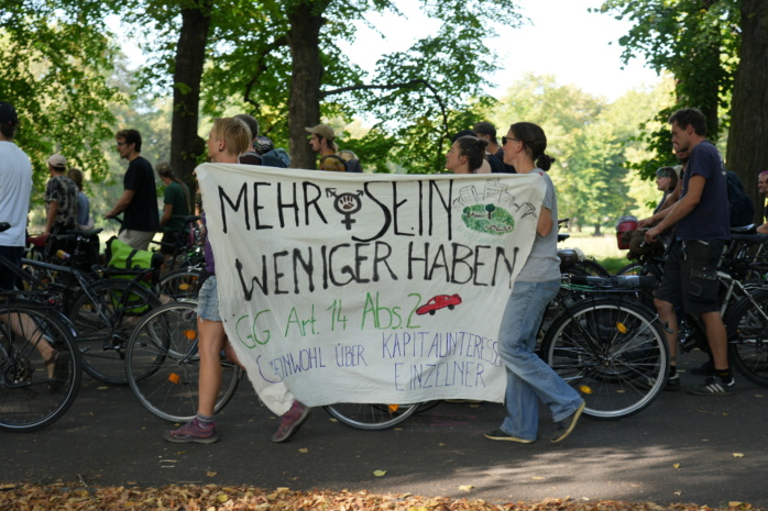 Organisiert wurde die Demonstration unter anderem von Bewohner*innen des Wagenplatzes Karl Helga in der Klingenstraße. Redebeiträge kamen beispielsweise auch von der Initiative Stadtnatur, die sich für den Erhalt von Wagenplätzen als Biotope und unversiegelte Wohnflächen aussprach.