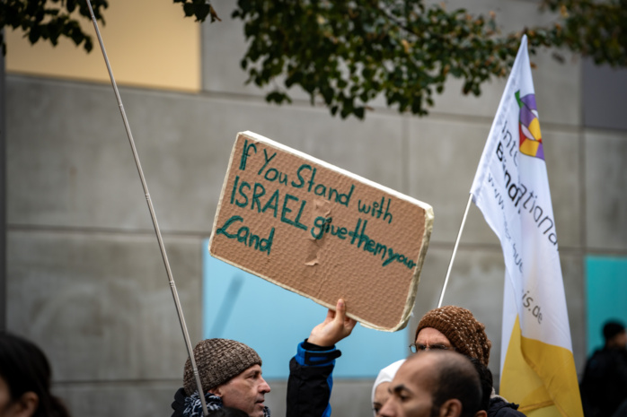 Demo unter dem Motto „Stoppt den Genozid in Gaza! Stoppt die Besatzung!“