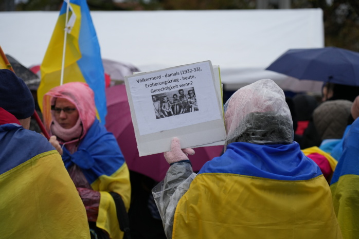 Wie schon im vergangenen Jahr gedachten am Samstag zahlreiche Menschen dem „Holodomor“ in der Ukraine. In den 1930er Jahren fielen mehrere Millionen Menschen einer durch die Sowjetunion verursachten Hungerkrise zum Opfer. Manche Expert*innen bewerten das Geschehen als Völkermord.