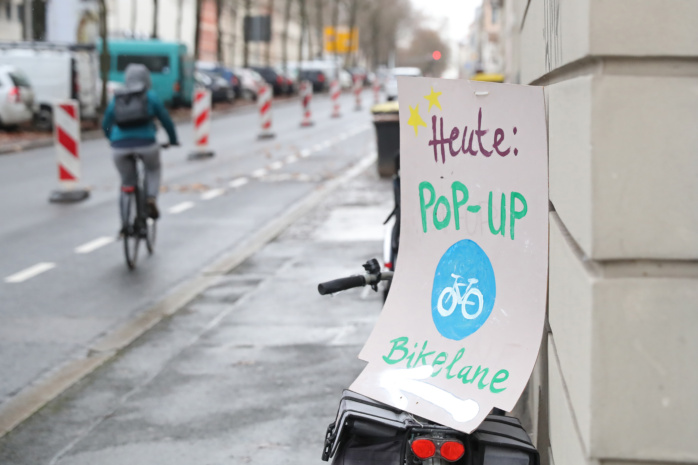 Doch auch politische Gruppen, die sich für eine Verkehrswende einsetzen, nutzen Pop-Up-Radwege, um ihre Forderungen zu unterstreichen – so wie heute in Leipzig. Sie melden dafür auf einem Fahrstreifen eine Versammlung an.