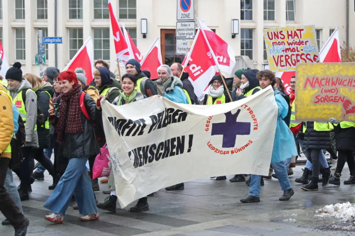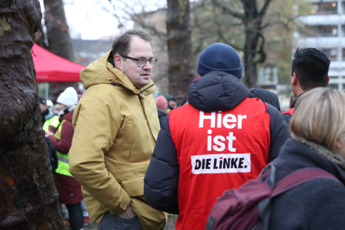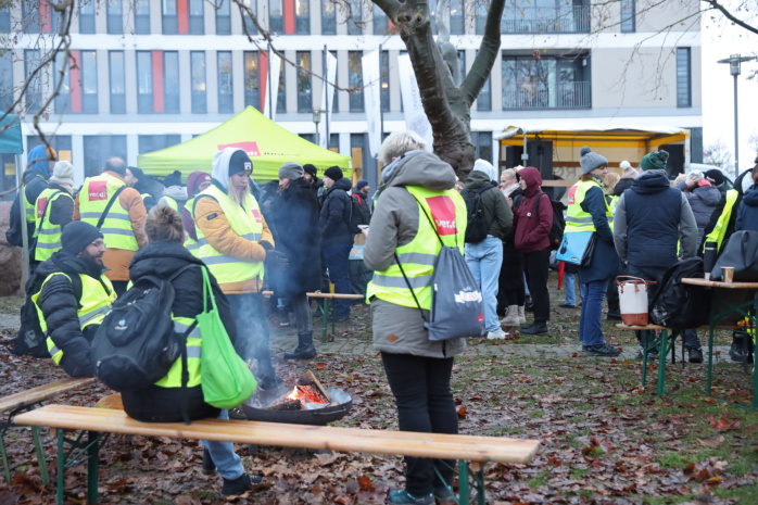 In Leipzig streikten neben Lehrer*innen unter anderem Beschäftigte des Universitätsklinikums, der Universität und des Studentenwerks. Am Mittwochmorgen versammelten sich die Streikenden beispielsweise vorm Uni-Klinikum in der Liebigstraße. Mit Kaffee, Tee und Feuerschale versuchten sie sich, warm zu halten. Besuch bekamen die Streikenden vom Bundestagsabgeordneten Sören Pellmann (Die Linke), der seine Solidarität ausdrückte.
