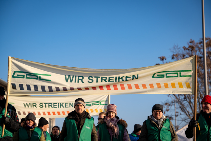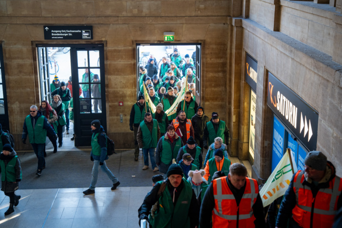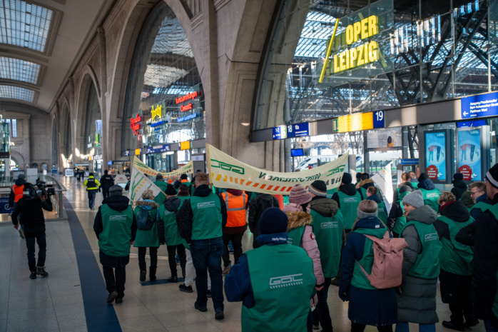 Erneuter GDL-Warnstreik: Kundgebung von Eisenbahner*innen in Leipzig