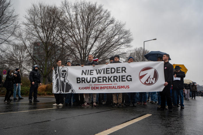Der „Trauermarsch“ konnte seinen Zug bis zum Ende fortsetzen. Bei einer Kundgebung wurden hielten verschiedene rechtsextreme Organisationen Reden. Eine Schweigeminute wurde vom linken Gegenprotest übertönt. Mit einem „Heil euch!“ des Moderators endete die rechte Versammlung. Laut Organisator seien etwa 1200 “volkstreue und heimatverbundene Deutsche” vor Ort gewesen.