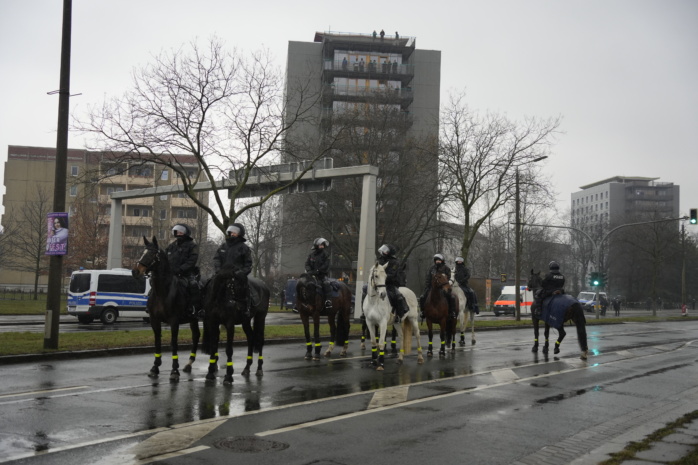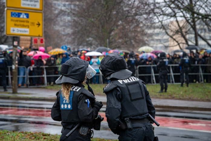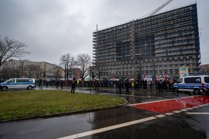 Das erklärte Ziel der Polizeieinheiten vor Ort war es, die Proteste voneinander zu trennen, sie jedoch in Hör- und Sichtweite zu halten. Am Hauptbahnhof kam es zu Durchbruchsversuchen von Seiten des linken Gegenprotests. Rund 120 Menschen wurden infolgedessen gekesselt. „Dresden Wi(e)dersetzen“ schrieb auf X (vormals Twitter), dass keine Behandlung durch Sanitäter*innen im Kessel zugelassen werde. Gegen Nachmittag sei eine Person in ein Krankenhaus gebracht worden.