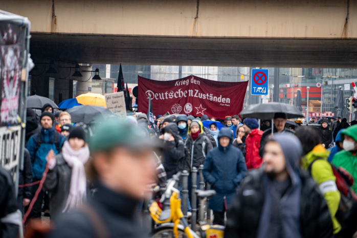 Redner*innen wandten sich gegen Rassismus und Sexismus bei der Polizei, wie auch gegen die vorgeworfene Militarisierung Deutschlands und sprachen von Repressionen gegen Palästinenser*innen.