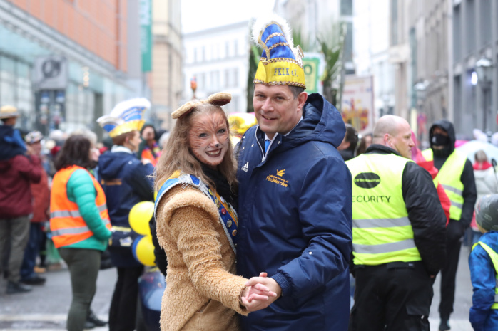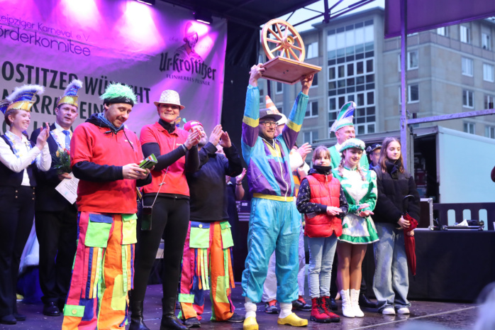 Am Brühl startete der diesjährige Rosensonntagsumzug seinen Zug durch die Innenstadt. Um 14 Uhr begann der Korso mit 26 Karnevalswagen und rund 400 Aktiven, gesäumt von tausenden Zuschauer*innen seinen Umzug. Die Leipziger Narren mit ihrem Maskottchen Leila beendeten ihren Zug auf dem Markt vor dem Alten Rathaus.
